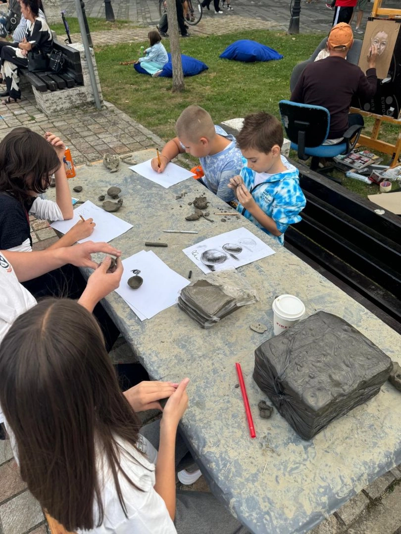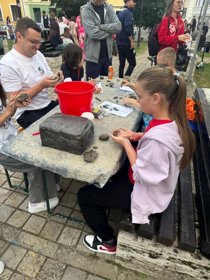 Copiii au zburdat de fericire în jurul desenelor, al creioanelor și al bucăților de lut, iar inocența lor a adus o energie aparte întregului eveniment. Fiecare lucrare a purtat amprenta purității și a magiei specifice copilăriei, transformând Piața Mică într-un loc unde arta s-a născut firesc, cu zâmbete și curiozitate.